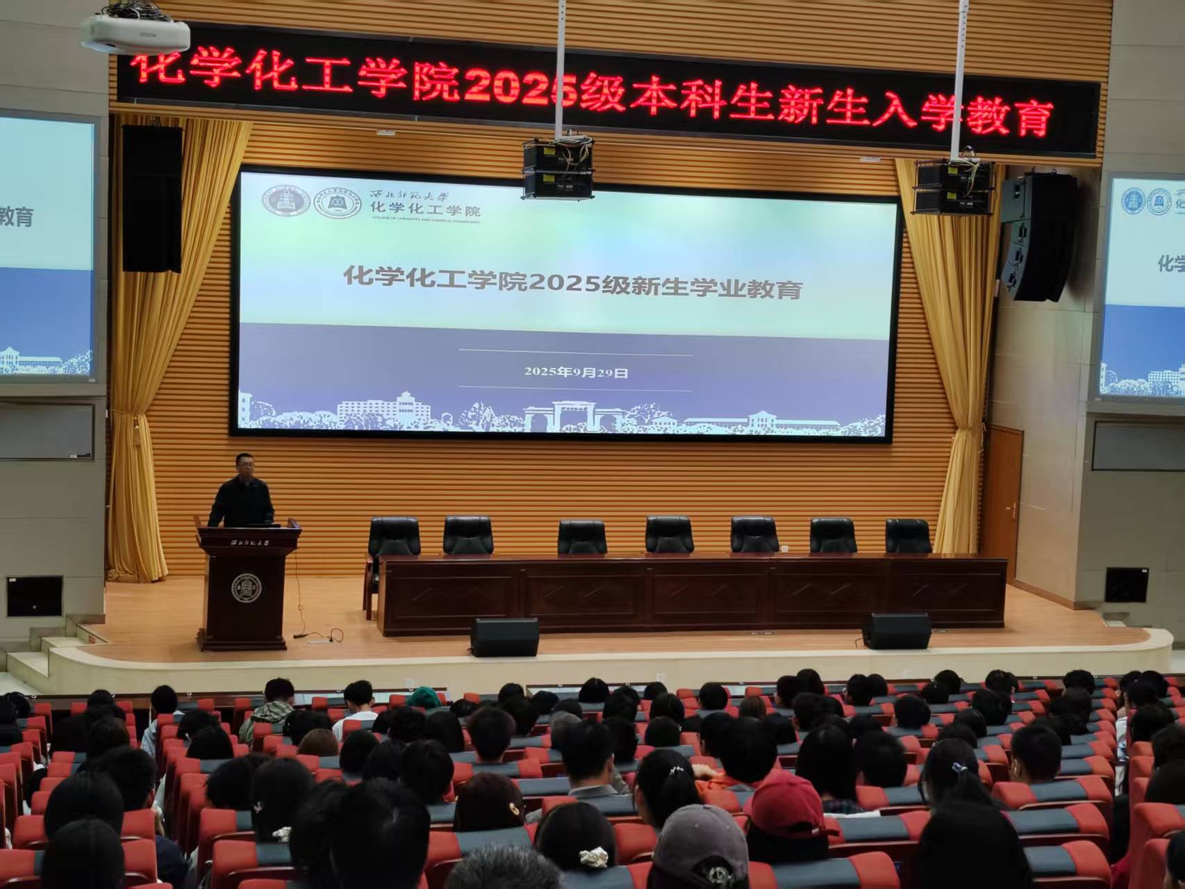 2025年9月29日,w88win优德在毅然报告厅顺利举办了2025级新生学业教育。本次会议由学院辅导员杨帆主持,副经理黄静伟、教务秘书及全体2025级本科新生共同参加。